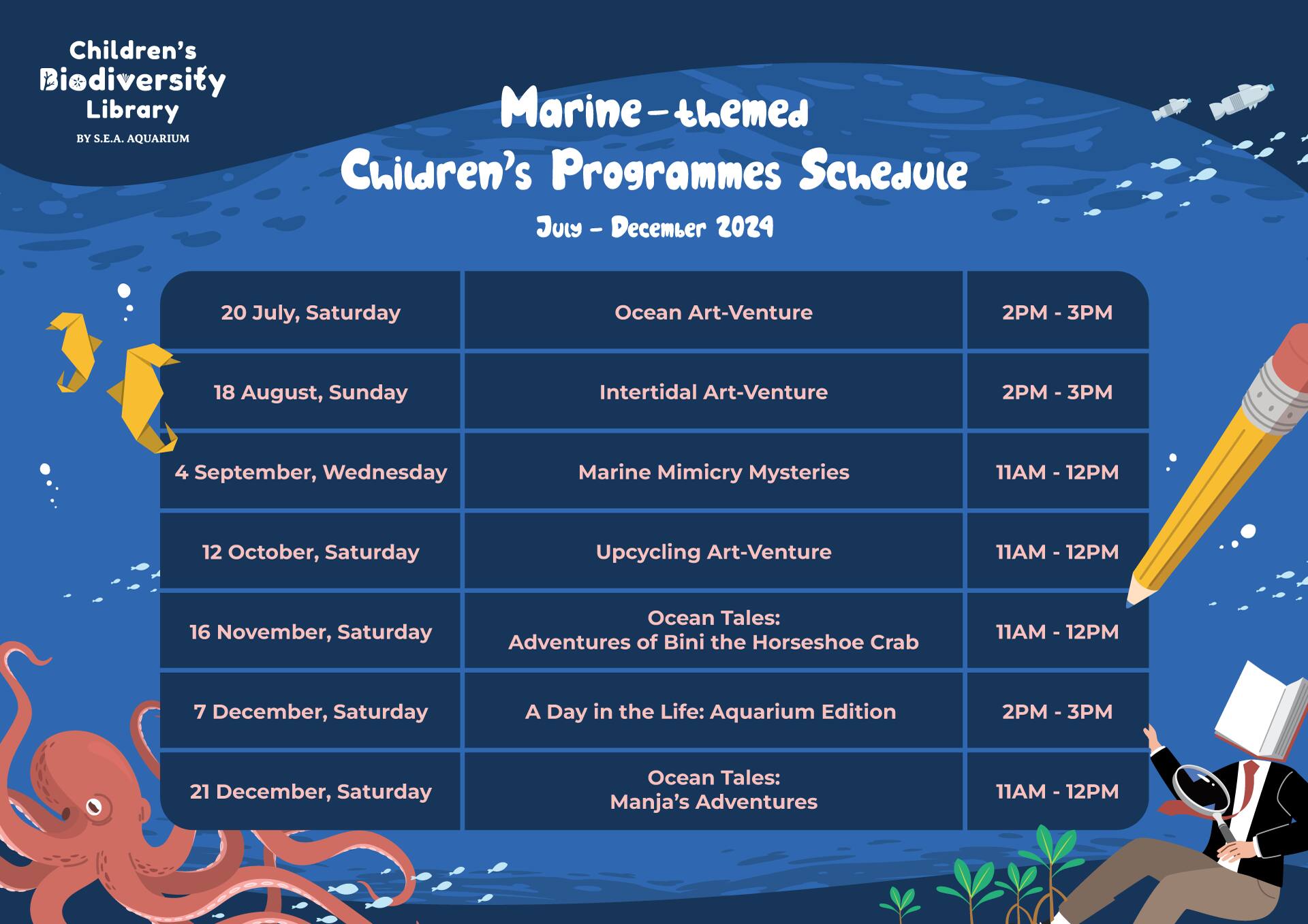 Singapore's first marine biodiversity-themed learning space for children in a public library, the Children's Biodiversity Library by S.E.A. Aquarium is a partnership between National Library Board (NLB) and Resorts World Sentosa (RWS). Embark on an exciting voyage of discovery through a diverse range of engaging and interactive features, as well as monthly programmes led by trained volunteers to learn more about marine habitats and marine life.